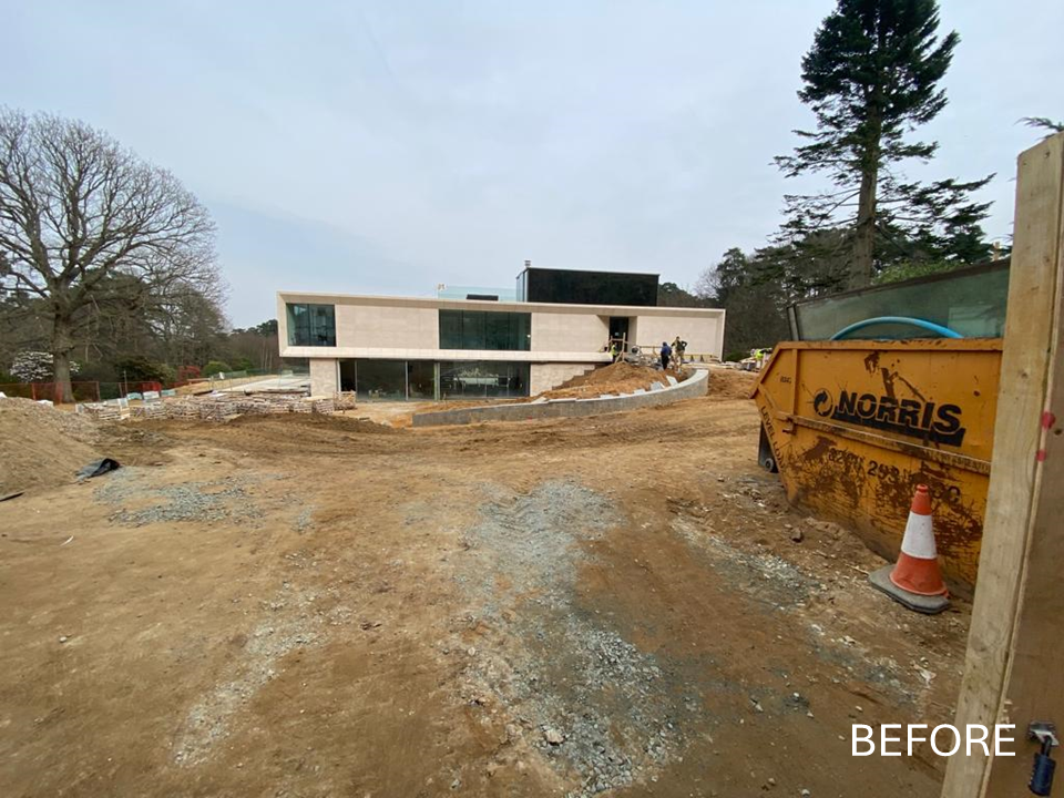 Soft Landscaping works completed by Verde Landscapes. The client commissioned the talented team at Tye Architects to design this exceptional and unique property and the vision was expertly brought to life built by Klimstar.